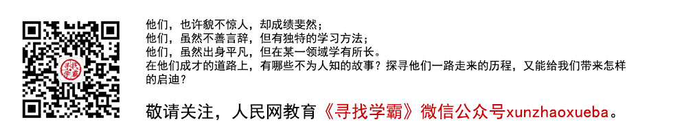 如果你身边也有心存梦想,勇于坚持,并在某方面有所建树的学霸,那么请推荐给我们! 电话:010-65367970 邮箱:zhaoyingzi@people.cn