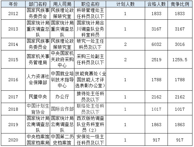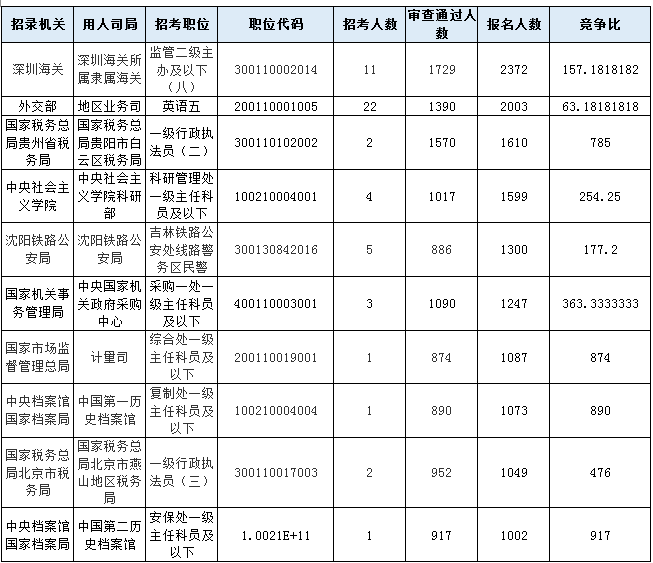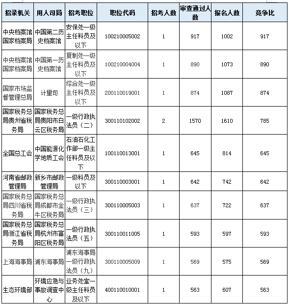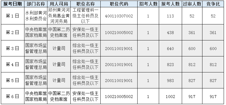 近八年国家公务员考试报名第6天竞争最激烈职位一览表