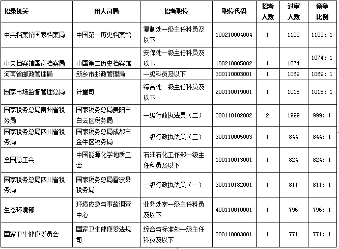 2020国考报名过审人数最多前十职位[截至22日9时]