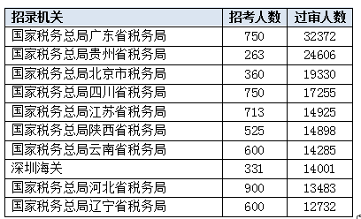 2020国考报名过审人数最多前十部门[截至22日9时]