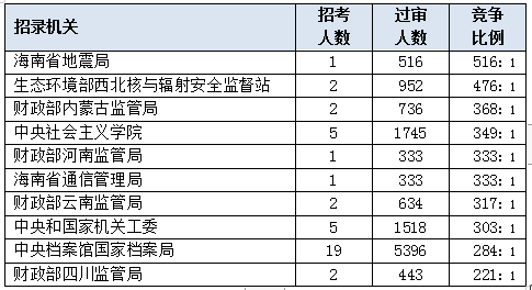 2020国考报名过审人数竞争最激烈前十部门[截至22日9时]
