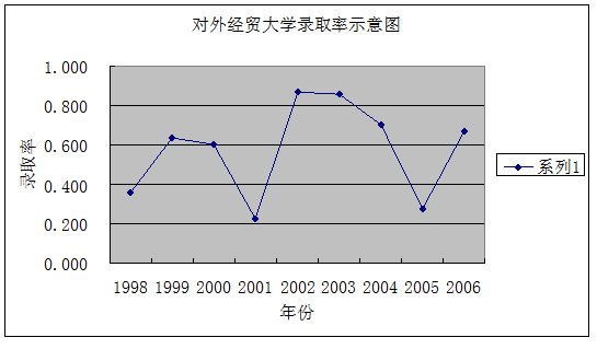 在以上图表中,我们可以一目了然的看出,录取率低的年份为该校的大年,录取率高的年份为该校的小年。并能大体预测出当年的大小年变化趋势。