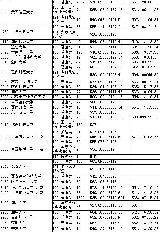 湖北省2013年高校招生本科一批投档线(理文)【5】