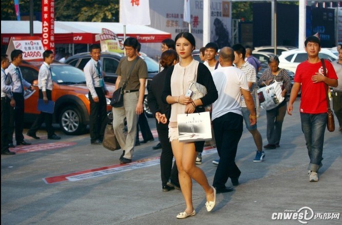 车展结束后,李静凝换上便装、平底鞋离开展馆。