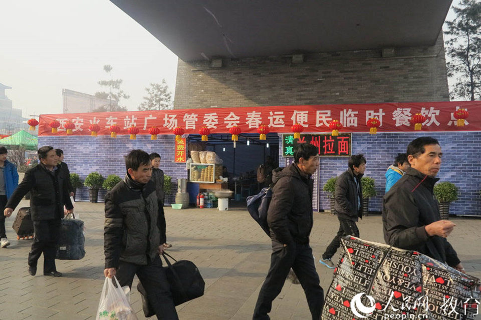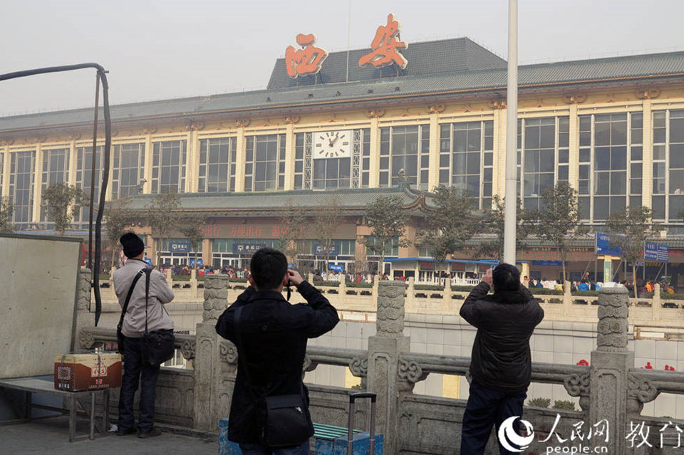 下了火车的人走出车站。让人惊喜的是,西安人民的热情好客,西安对备战春运下足了功夫,让我印象颇深。