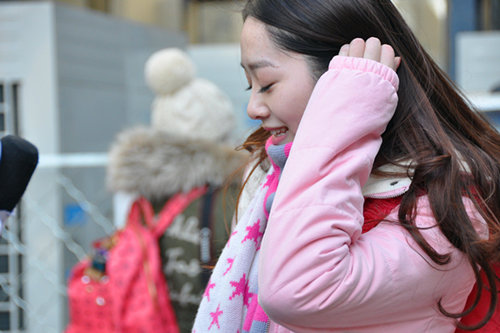 图为走出考场的表演系考生。