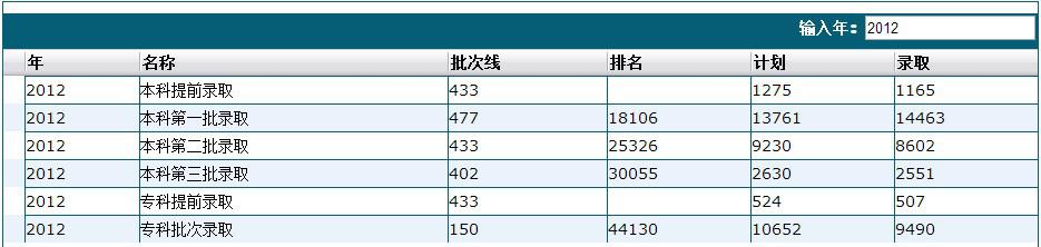 2012年的录取概况