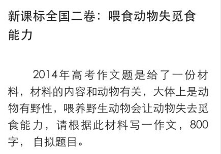 @董锤锤:甘肃高考作文题目:动物都有野性,喂养野生动物会让动物失去觅食能力。这不是废话吗,可以叫外卖谁还自己做饭啊???