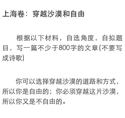 @苍南派:#上海高考作文#:你妈妈说你可以选择和哪个女的结婚,所以你是自由的;可是你又必须只能和女的结婚,所以你又是不自由的。