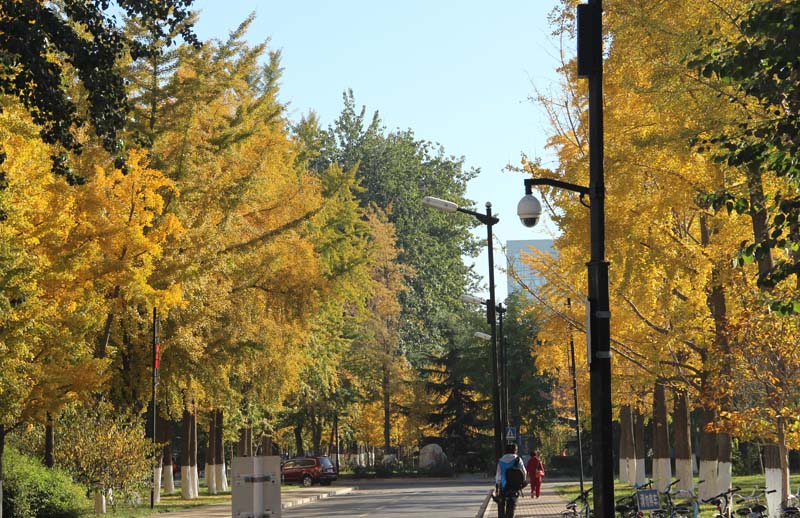 从西门进入人民大学,笔直就是银杏路,黄叶纷飞便是提醒人大秋天已至。杨松摄影