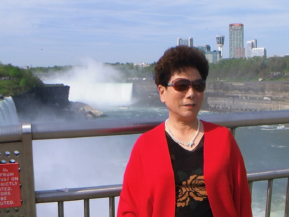 她享受旅行中的每一刻,她说,未来还要去更多的地方,从自然中学习到的更为深刻,也更能体会大自然的智慧所在。她喜欢尼亚加拉大瀑布的奔腾,那种一泻千里的豪迈,是让生命怒放的姿态。(背景为尼亚加拉大瀑布)