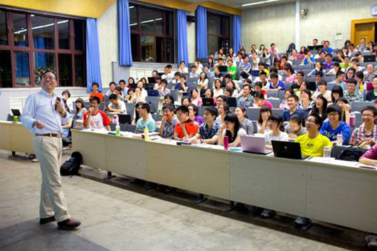 如此欢乐的心理学课程。清华大学心理学系系主任彭凯平教授为经管学院本科生授课。(供稿 吴姝)