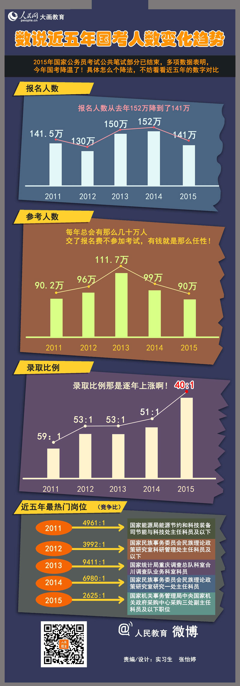 2015年国家公务员考试公共笔试部分已结束,多项数据表明,今年国考降温了!具体怎么个降法,不妨看看近五年的数字对比。