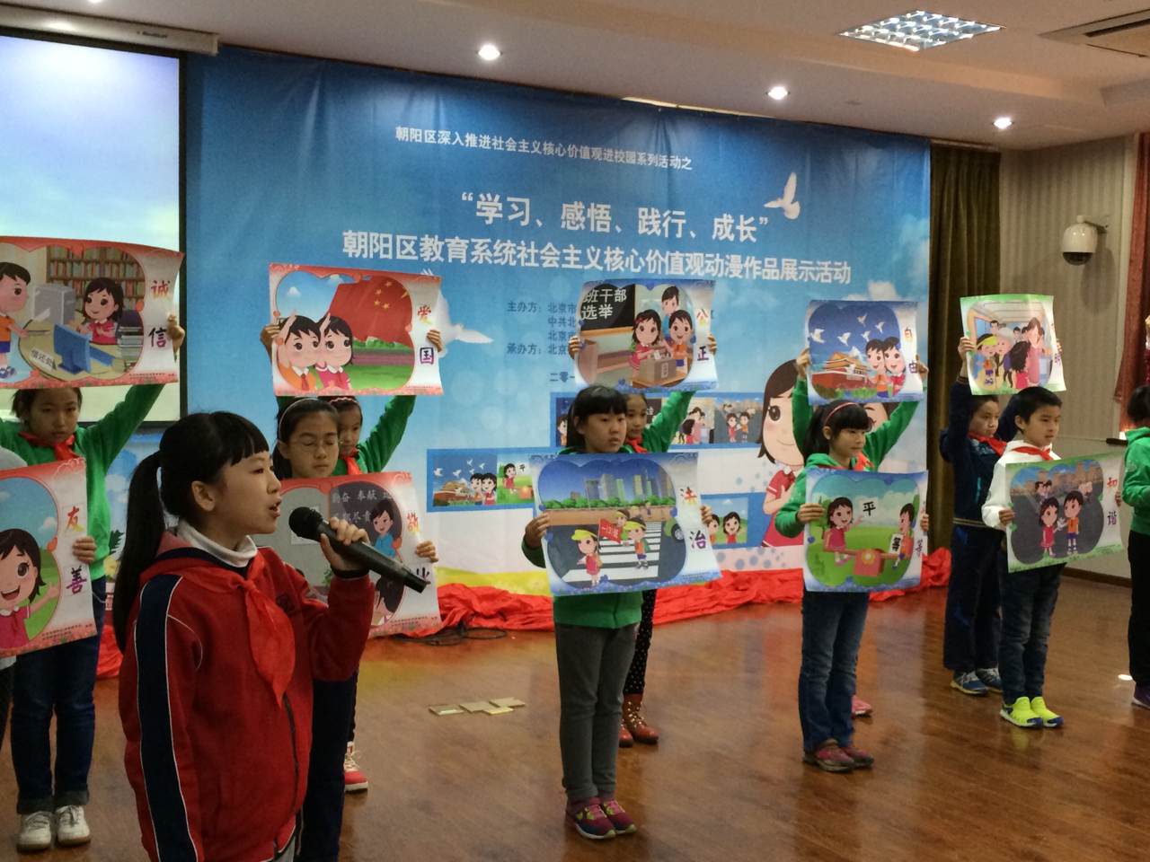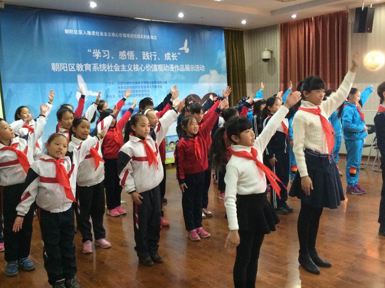 好博体育北京12月10日电 (赵英梓)“我在阳光下成长,中国梦想有希望,胸前飘扬红领巾。敬个队礼给您……”,今日上午,北京市朝阳区教育系统社会主义核心价值观动漫作品展示活动在呼家楼中心小学举行,改编的少先队版《小苹果》响彻校园。