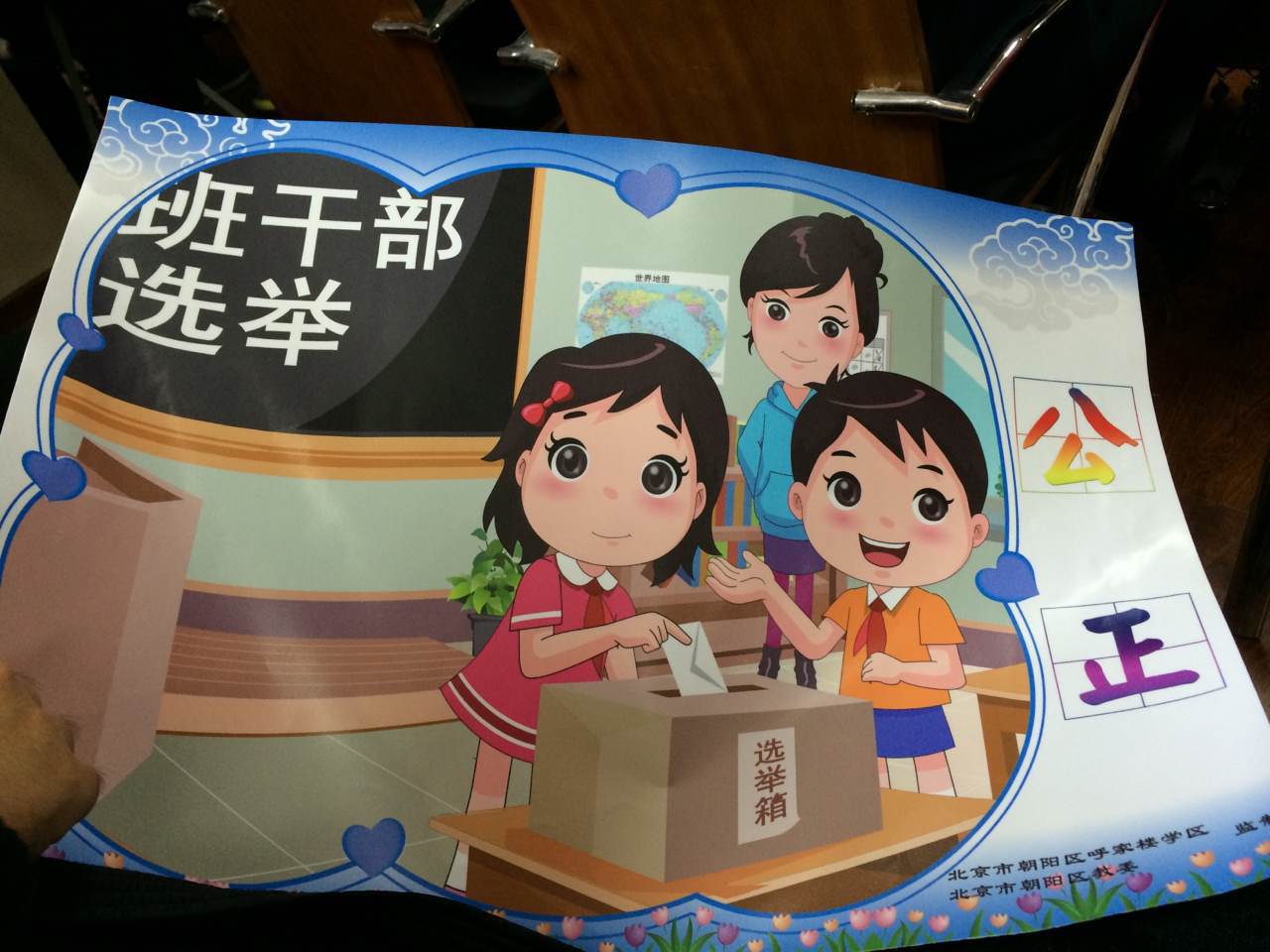 孩子们用漫画的形式,准确、生动地表达富强、民主、文明、和谐、自由、平等、公正、法治、爱国、敬业、诚信、友善社会主义核心价值观。据介绍,《社会主义核心价值观动漫海报》是北京朝阳区孩子们自主设计的。