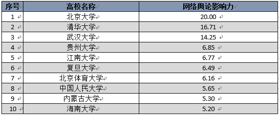 北上广高校网络舆论影响力靠前 “双微”影响力大