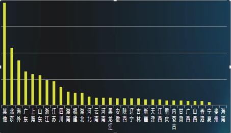 排名前十高校的受众主要分布在北京、湖北、江苏、上海、广东、浙江、天津等沿海地区及高校周边辐射地区,但没有特别明显的地域空间界限,表明前十高校的受众分布地域范围广,以沿海及周边地区为主。