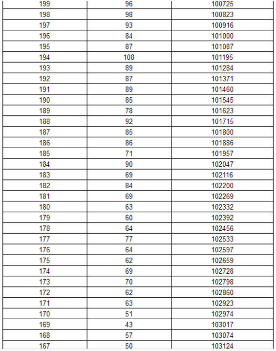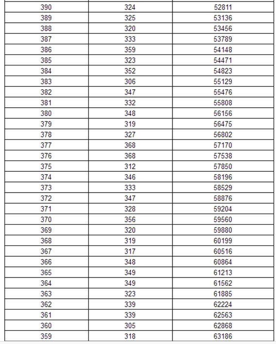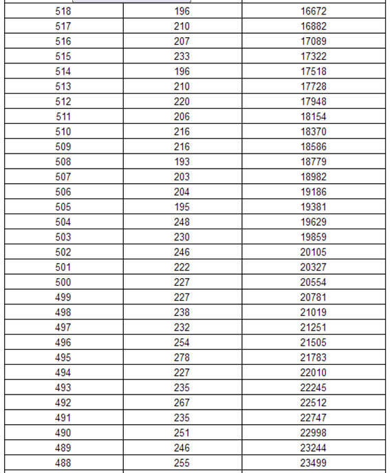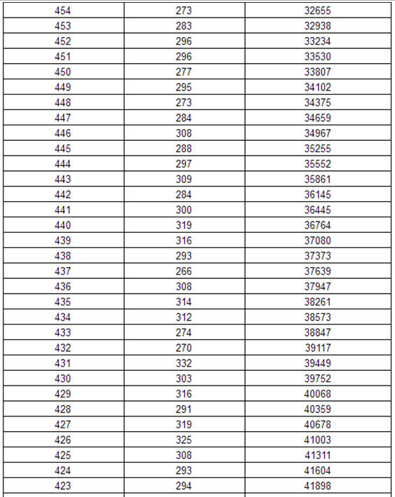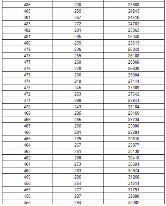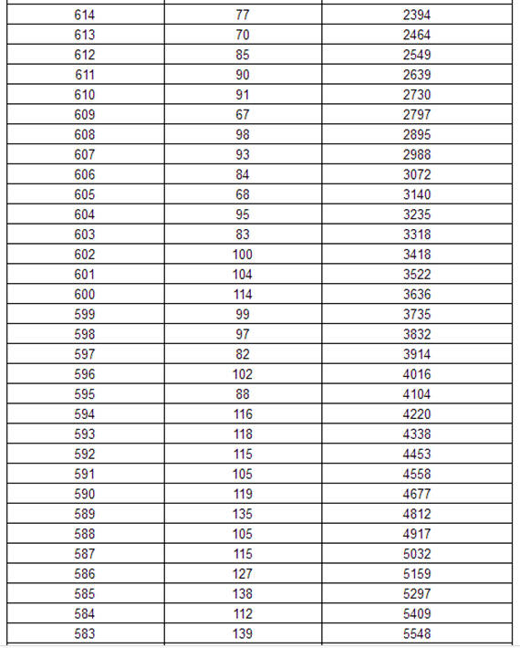 2017年黑龙江省普通高考理科类分数段统计表详细如下: