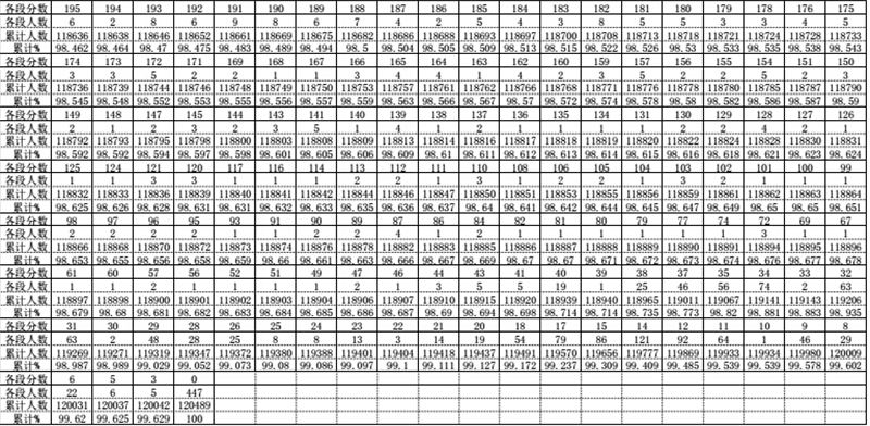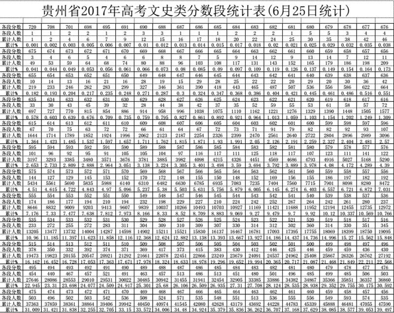 2017年贵州普通高考文史类分数段统计表详细如下: