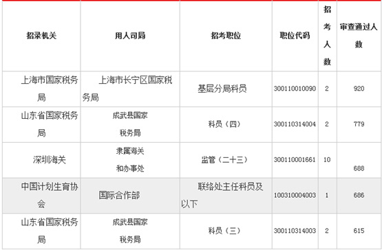 2018国考报名过审人数最多前五职位[截止11日2日16时]