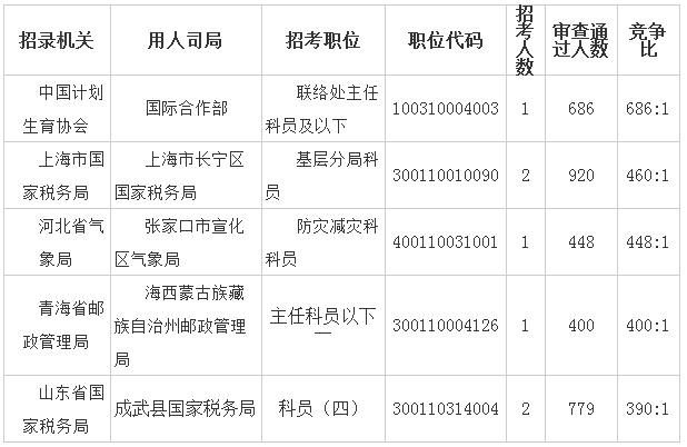 2018国考报名竞争最激烈前五部门[截止11日2日16时]