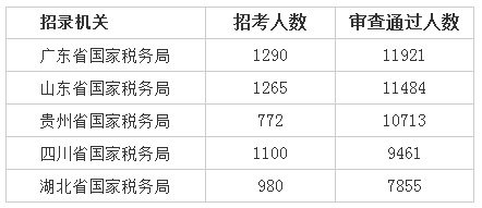 2018国考报名过审人数最多前五部门[截止11日2日16时]