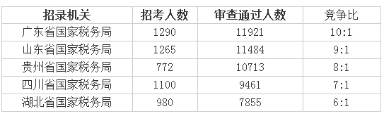 从近几年国税招录情况来看,国税系统历来是“招录大户”,今年也不例外,目前通过审核人数过万的部门已有三个,这三个部门同时也是竞争最激烈部门,最难考的部门。
