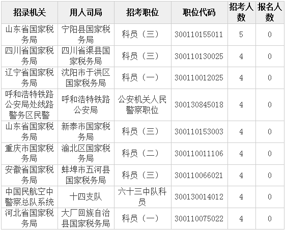 在无人报考的职位中招录计划最多的是山东省国家税务局宁阳县国家税务局科员(三)(职位代码300110155011)这一职位,要求经济学类财政学类、本科及以上的2018应届毕业生。