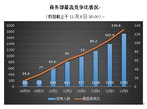 2018年国考报名第八天:商务部最高竞争比达130.8:1