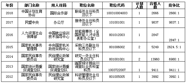 最后从最热职位竞争比来看,目前依然是中国计划生育协会国际合作部联络处主任科员及以下(职位代码100310004003)一职竞争比最高,为2666:1,相对于近7年其他职位的数据而言,柔和了很多,已经不再是万里挑一的局面了。