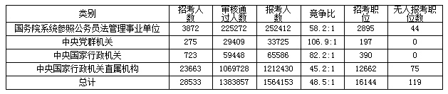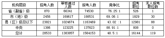 中央党群百里挑一,中央国家行政机关直属机构低于平均竞争比