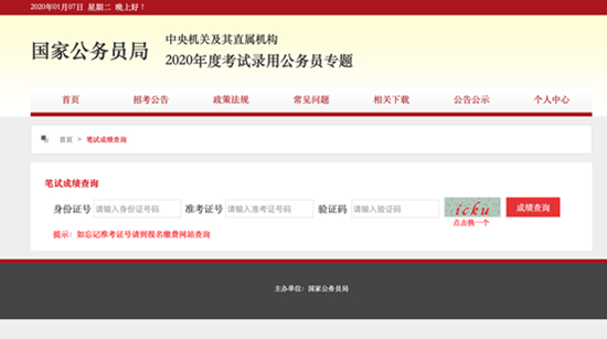 笔试成绩查询界面截图(来源:国家公务员局网站)
