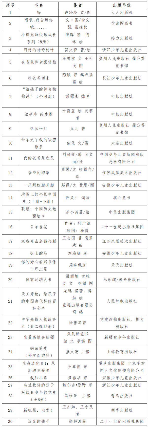 原创好童书推荐计划自启动以来,共收到国内80余家出版单位推荐的原创童书。评委会专家围绕儿童中心、教育初心、时代核心、艺术重心的“四心标准”,最终评选的30种童书获得首届“童阅中国”原创好童书荣誉称号。后续,中国儿童中心将围绕原创好童书,在全国校外系统进行好童书配套阅读活动研发及推广,从实践层面引领和促进儿童阅读,推动儿童阅读成为全民阅读的有效抓手,助力建设社会主义文化强国。