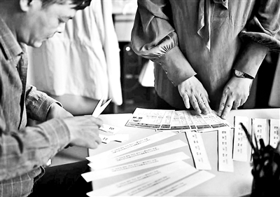 北京市第十八中学老师为发放准考证做准备