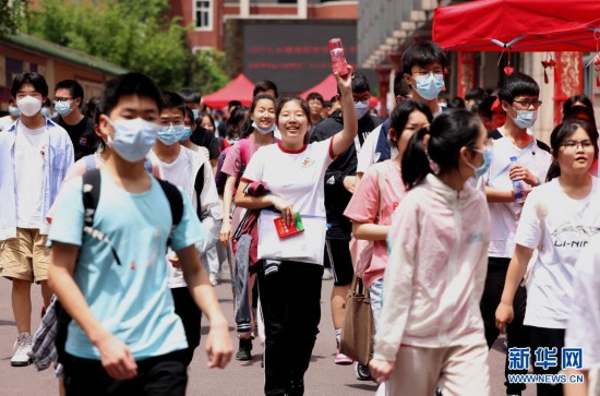 6月14日,在合肥市瑶海区第三十八中学考点,首场考试结束后,考生走出考场。