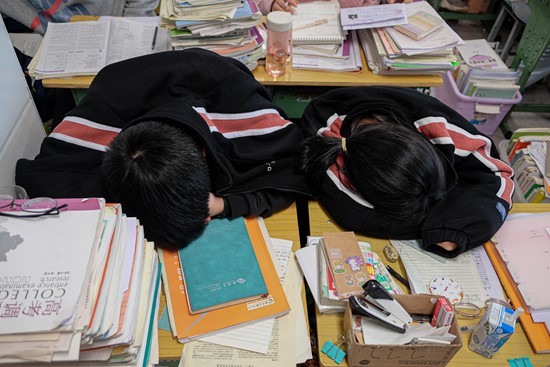 我的班级叫“线下”复读班,大部分是去年高考没有达到本科线的学生。比起考取名校,他们的复读目标更加现实。张伟去年高考成绩比预期低了60分,他不服气,选择再考一年证明自己;陈鹏飞则想今年争取能够考上本科。