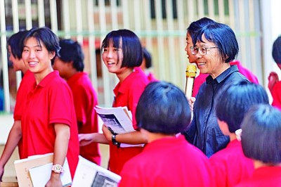 张桂梅和学生们在一起。 新华社记者 陈欣波摄