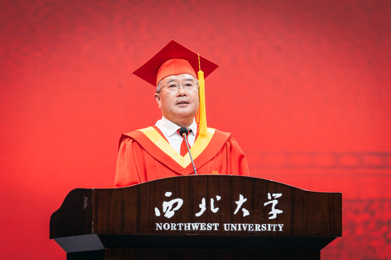 西北大学校长郭立宏在毕业典礼上发表讲话(学校供图)