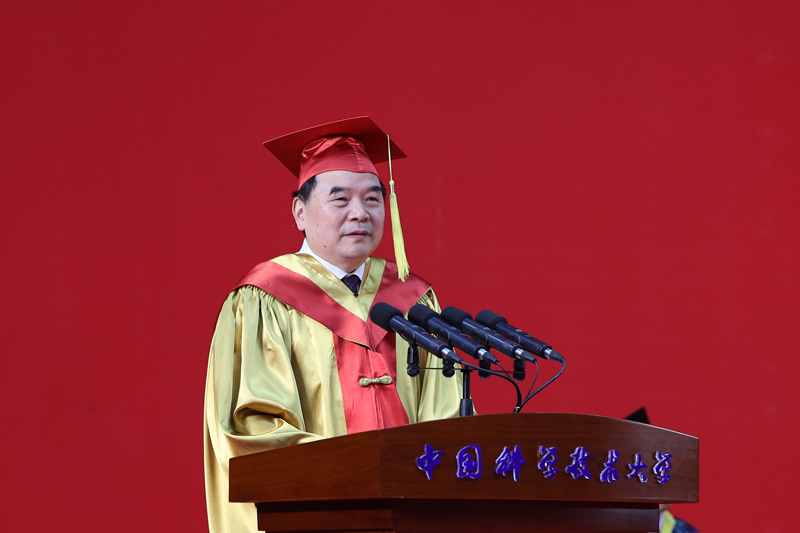 “红专并进、理实交融”的校训精神已经深深融入每一位科大人的血脉,希望同学们坚定“科教报国”的初心和使命,将个人理想和价值追求,自觉融入党和国家的伟大事业中去,在小我和大我的碰撞融合中,不断校正个人发展的航向,成功地实现你们的人生崇高价值。