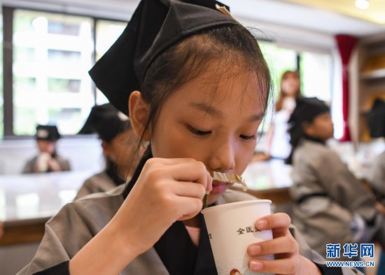 7月14日,在成都市武侯区竹园社区,一名小朋友在闻荷叶的味道。
