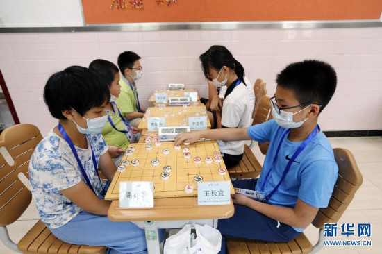 当日,为丰富暑期生活,北京东城区中小学生智力运动会棋类、数独比赛在府学胡同小学和西中街小学举行。9所中学和26所小学的近500名选手参加了比赛。新华社发(周良 摄)