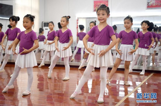 7月28日,孩子们在陕西铜川王家砭村“复兴少年宫”练习舞蹈。
