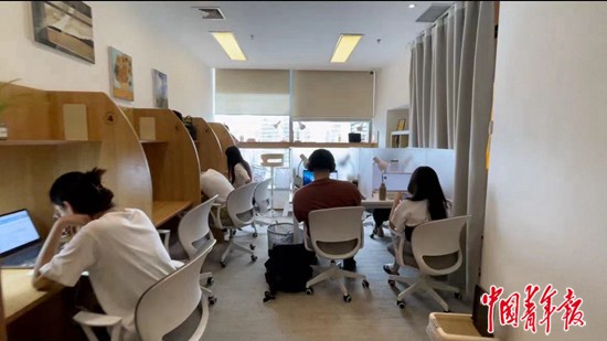 7月17日下午,位于北京朝阳区望京的一家付费自习室里,不少年轻人在学习。中青报·中青网记者 孟佩佩/摄
