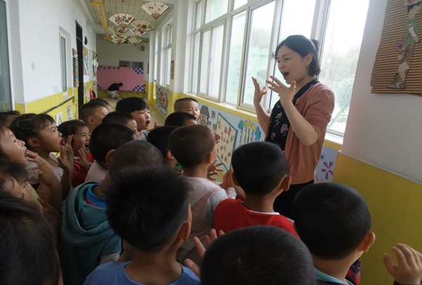 图为河南省新乡市辉县市西平罗乡中心幼儿园园长、教师郭文艳。图片来源:教育部