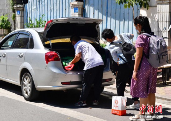 9月13日,福建省莆田市仙游第一中学校门口,家长接在该校就读的孩子回家。中新社记者 张斌 摄