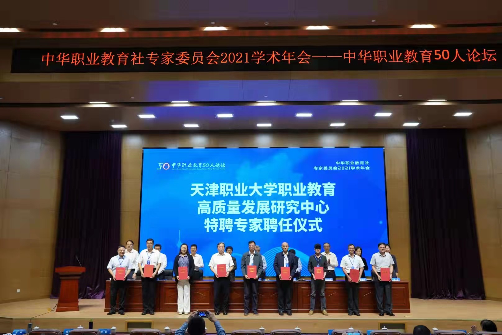 图为与会嘉宾为天津职业大学职业教育高质量发展研究中心特聘专家颁发聘书。主办方供图