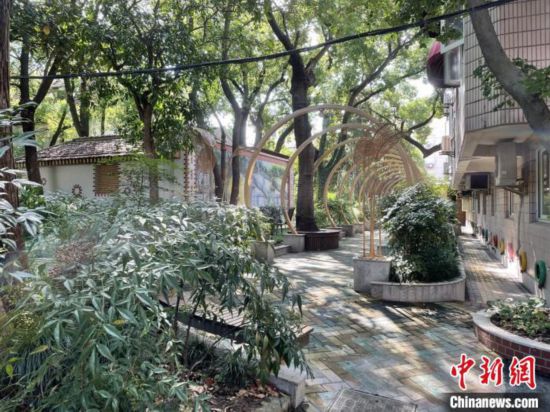 在上海音乐学院,集中投放点的垃圾厢房被称为“旧料别院”,成为师生拍照网红打卡点。记者步入“旧料别院”,空气中闻不到一丝异味,地面光可鉴人,“旧料别院”整体与周围的绿化、小景融为一体,回收再利用的轮胎被漆上不同颜色并镶嵌在周边建筑物墙体上,与休闲长廊的圆弧造型相得益彰。据介绍,零星维修剩余的木料块也不被浪费,它们在后勤工作人员的手中被组合起来,有的成为日常休憩的座椅,有的成为了屋檐的装饰。