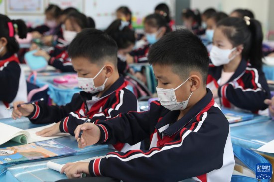 10月8日,哈尔滨市群力兆麟小学的学生在课堂上学习。