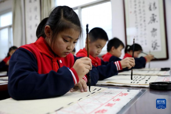 10月8日,河北省邢台市任泽区达二小学学生在练习书法。新华社记者 骆学峰 摄