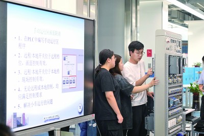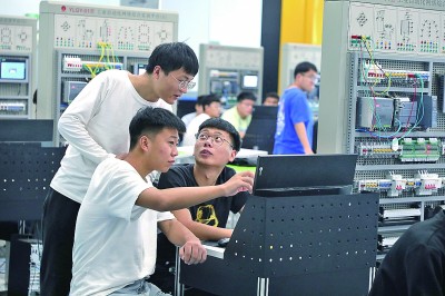 河北工业职业技术大学智能制造学院的学生在动手操作设备。光明图片